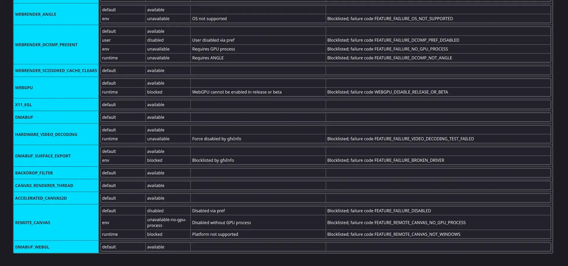 I don’t know what to do. I’ve tried searching through google and all the answers don’t seem to work. When I use Firefox (this is librewolf but it’s the same on Firefox), games like Tetr.io or Friday Night Funkin lag real bad but they’re buttery smooth on Chrome or Chromium. I have an iGPU and a “Cedar” AMD GPU according to lspci. Someone please help me, I don’t wanna use Chromium just to get good performance. Please tell me if I need to provide more information.