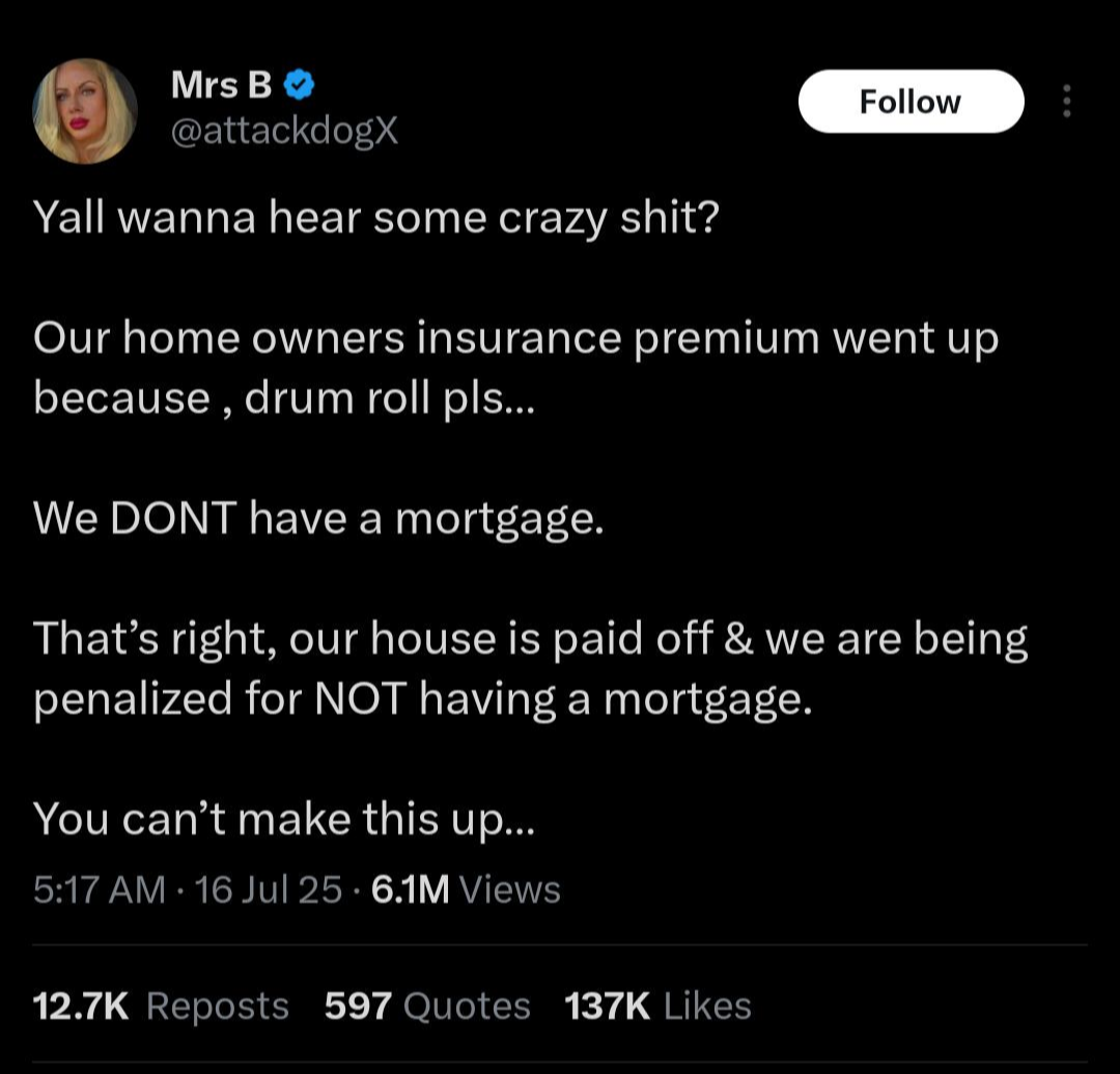 And is irrelevant to the text above? They said their insurance went up not that their credit score changed.