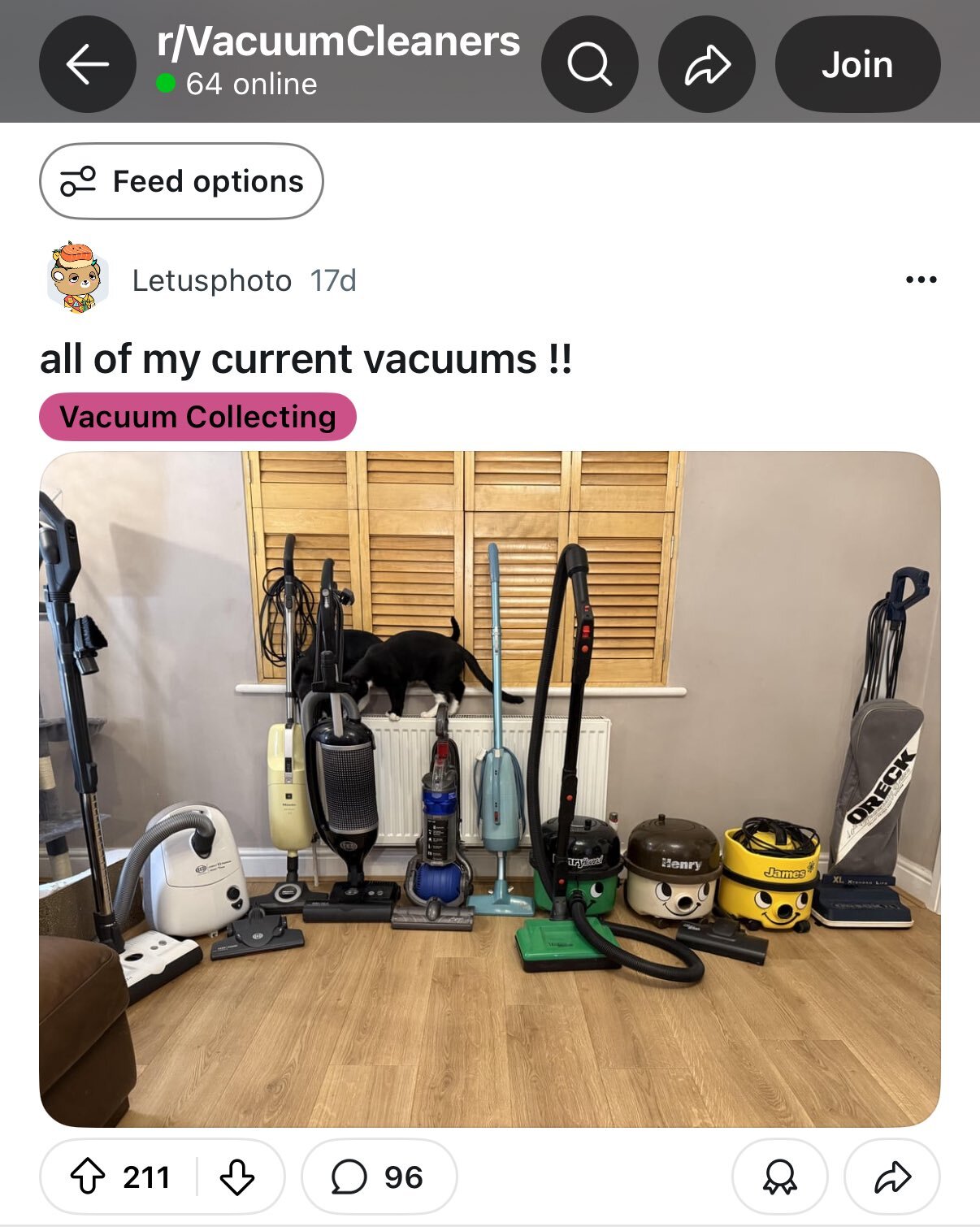 This must be a thing. This is not the first time I’ve seen someone with a vacuum collection. There might even be a word for this.