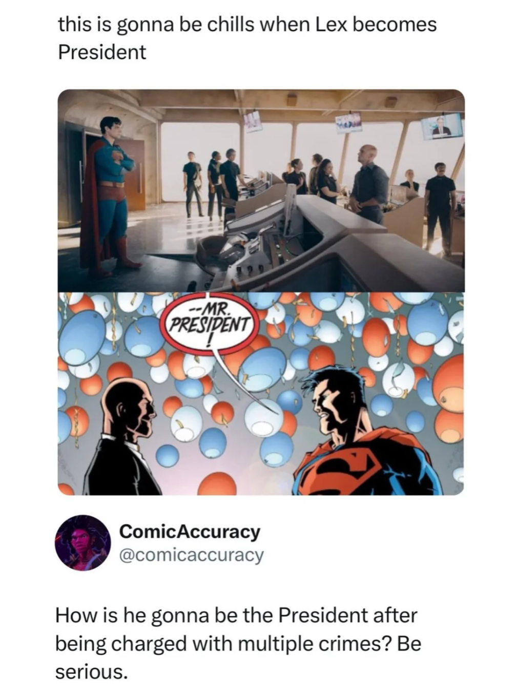 It was kind of nice in Superman (2025) that they actually had Superman dip a toe into addressing large scale real world issues with the invasion he stops and then deal with the aftermath of it. But that was about as complicated as we’re likely to see that real world parallel get unless they just turn the new DCU into a wholly different sort of world, a near utopia but police by the whims of a handful of ultra-powerful metahumans.