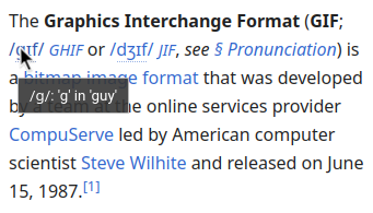 This is about the phonetics tooltip on Wikipedia, the GIF page is just for illustration, because that’s a phonetics topic that many people know.