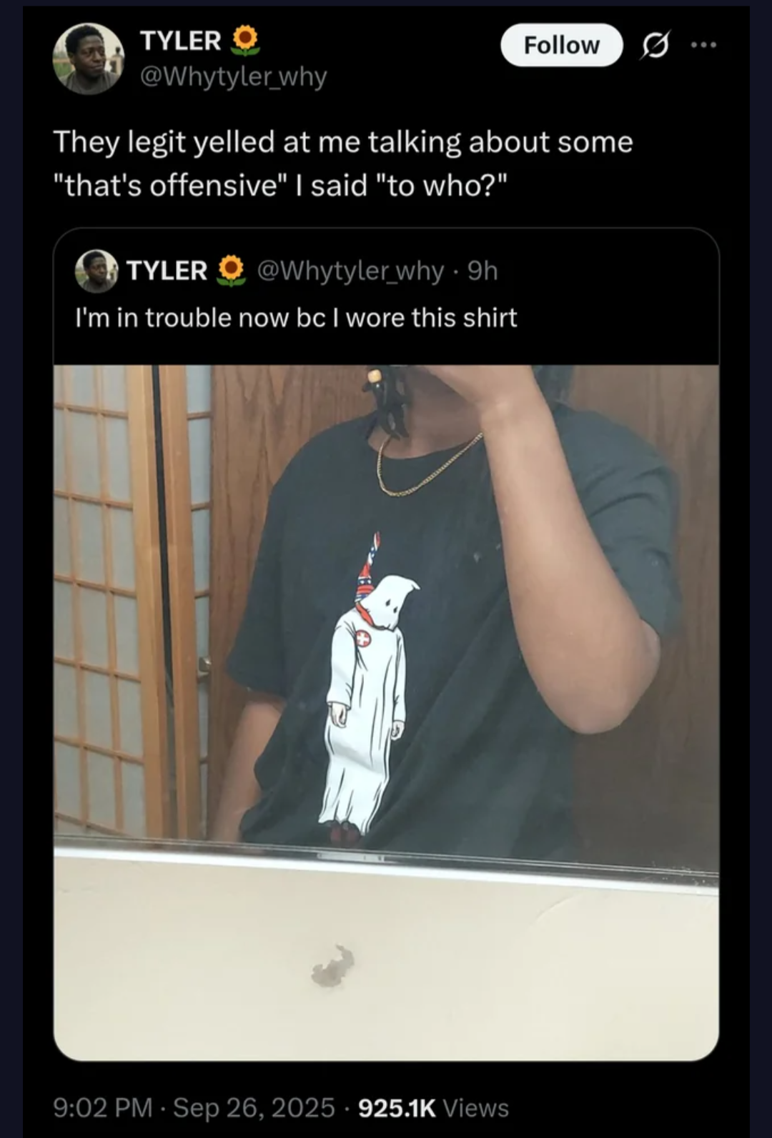 It’s offensive to our lord and savior Charlie Kirk who died for our right to die from gun violence
