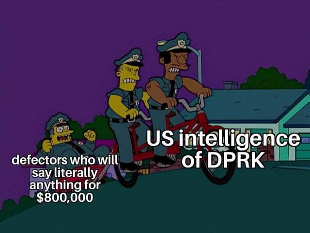 Cowbee: “Haha! What executions? All of it is completely made up and originates from things like satire! Things are wonderful in North Korea and anyone thinking otherwise has just been deceived.”