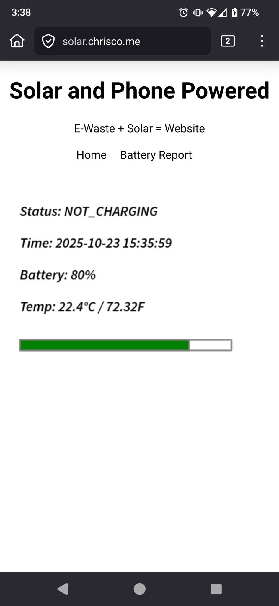 Hopefully keeping the battery at 80% will help the lifetime of the battery. I may bump it up at some point if it keeps dieing because lack of sunlight. But we shall see.