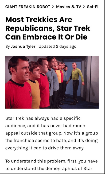 It will make more sense if he said most Trekkies are americans, but how you know they are republican if the vote are secret?