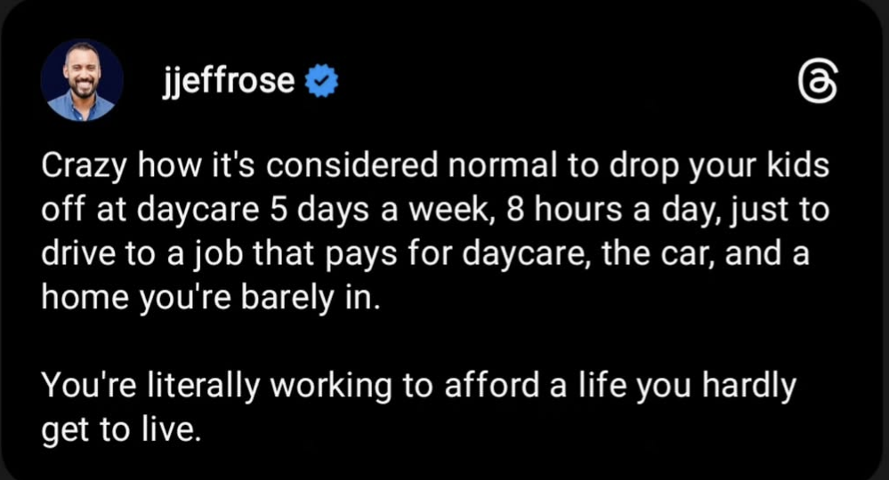 Fun fact: our economy is based on the work of John Maynard Keynes, who predicted the high growth would allow us a 15-hour work week by now. Guess where that time is going instead?