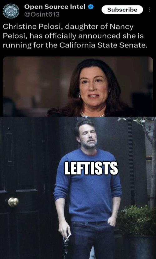 I actually know next to nothing about Christine Pelosi or her politics. For all I know she could be the most progressive politician in California. But I find it far more likely that she’s just going to follow in her mother’s footsteps and push to maintain the status quo that benefits the wealthy and powerful at the cost of the average American.